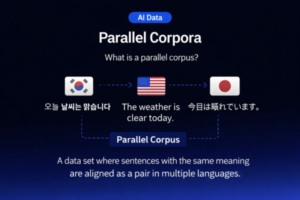 A parallel corpus refers to a dataset in which sentences with the same meaning are aligned in pairs across two or more languages. For example, a Korean sentence matched precisely with its corresponding English or Japanese translation forms a parallel pair. Such datasets play a critical role in training machine translation models, enabling them to learn how expressions in one language correspond to those in another.